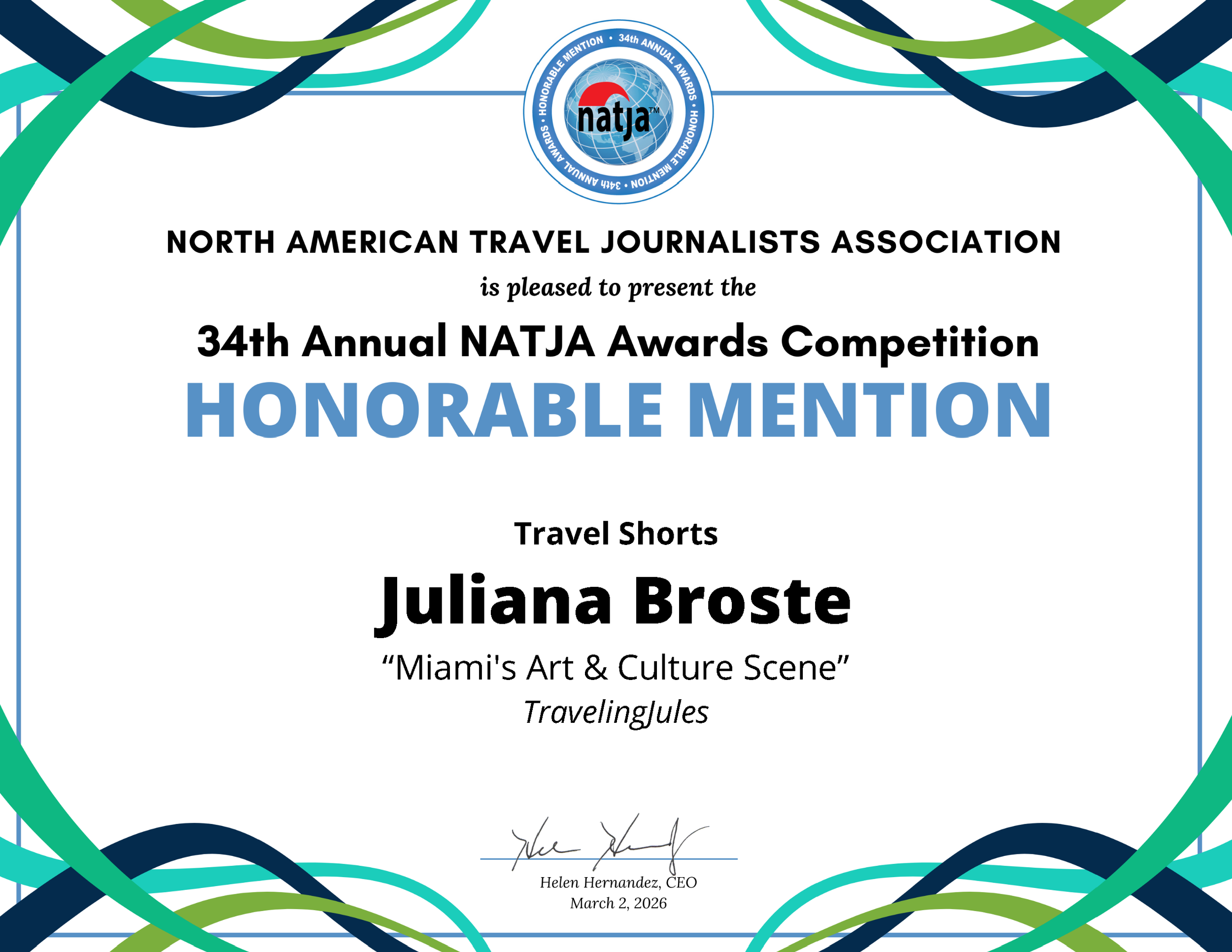 North American Travel Journalists Association (NATJA) Honorable Mention 2025