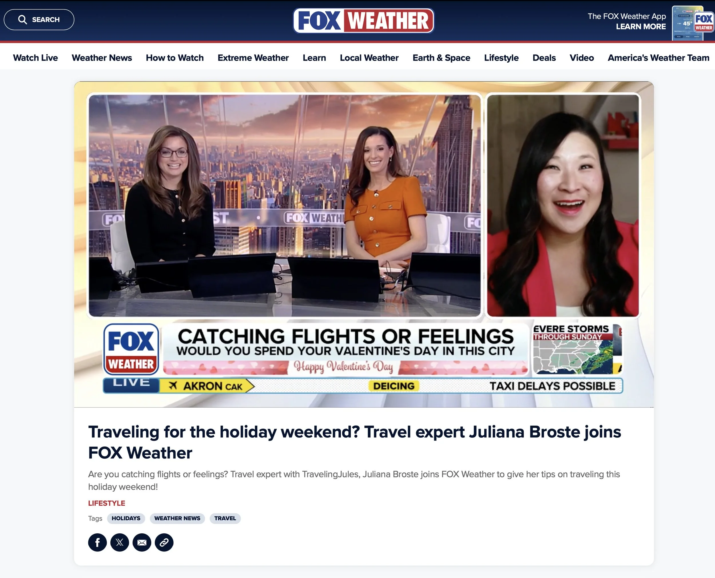 Traveling for the holiday weekend? Travel expert Juliana Broste joins FOX Weather [February 13, 2026]